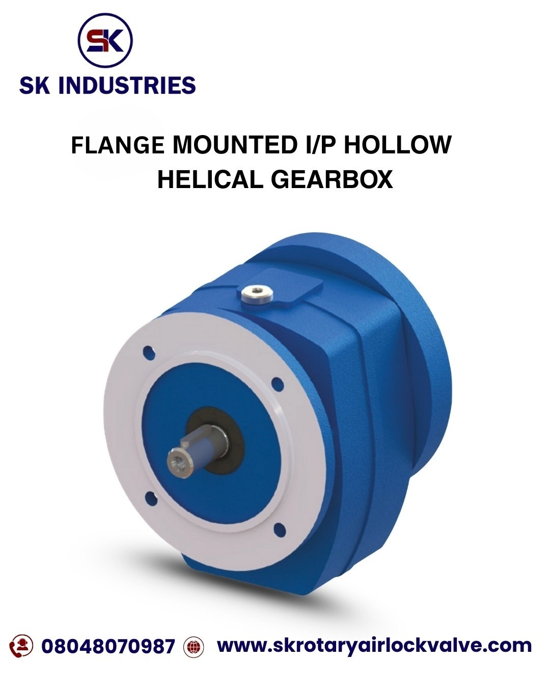 SK Industries is a trusted Flange Mounted I/P Hollow Helical Gearbox Manufacturer in Ahmedabad, delivering high-efficiency power transmission solutions for demanding industrial applications. Our gearboxes combine a flange-mounted motor input with a hollow output shaft and precision-engineered helical gears, ensuring smooth, low-noise, and high-torque performance. As a leading Flange Mounted I/P Hollow Helical Gearbox Supplier in India and Flange Mounted I/P Hollow Helical Gearbox Distributor in Gujarat, we provide compact, durable, and energy-efficient gear units for space-constrained installations. Key Features & Advantages: • Compact inline or right-angle design with hollow shaft for direct mounting • Flange mounting (B5 / B14) for rigid, accurate alignment • High efficiency (often above 90%) with minimal power loss • Smooth, quiet operation due to precision helical gearing • High torque capacity with excellent load handling • Compatible with various IEC and NEMA motor inputs Applications: Widely used in conveyors, material handling systems, mixers, agitators, pumps, packaging machines, food processing equipment, and industrial automation setups where reliability and energy efficiency are critical. Compared to worm gearboxes, these helical units deliver superior efficiency, longer service life, and lower operating costs. SK Industries ensures strict quality control, precision manufacturing, and dependable after-sales support. Contact us today for quick quotes and technical assistance.